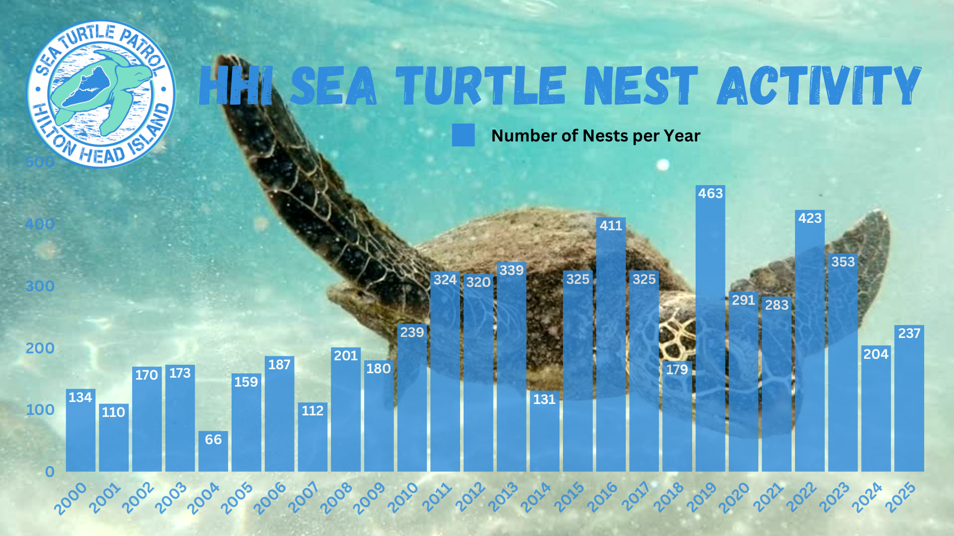 Yearly Turtle Nests on Hilton Head Island
