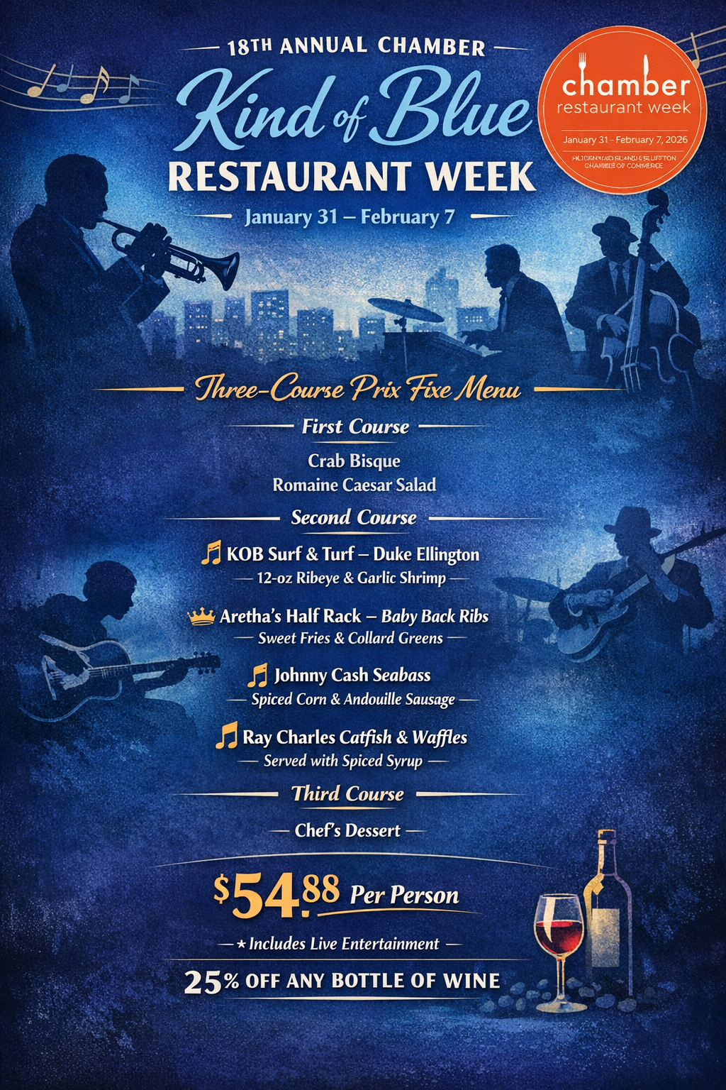 We’ll kick off Chamber Restaurant Week with Rollers Wine & Spirits from 5-8 p.m. on Thursday, January 29. Click here to get your tickets.