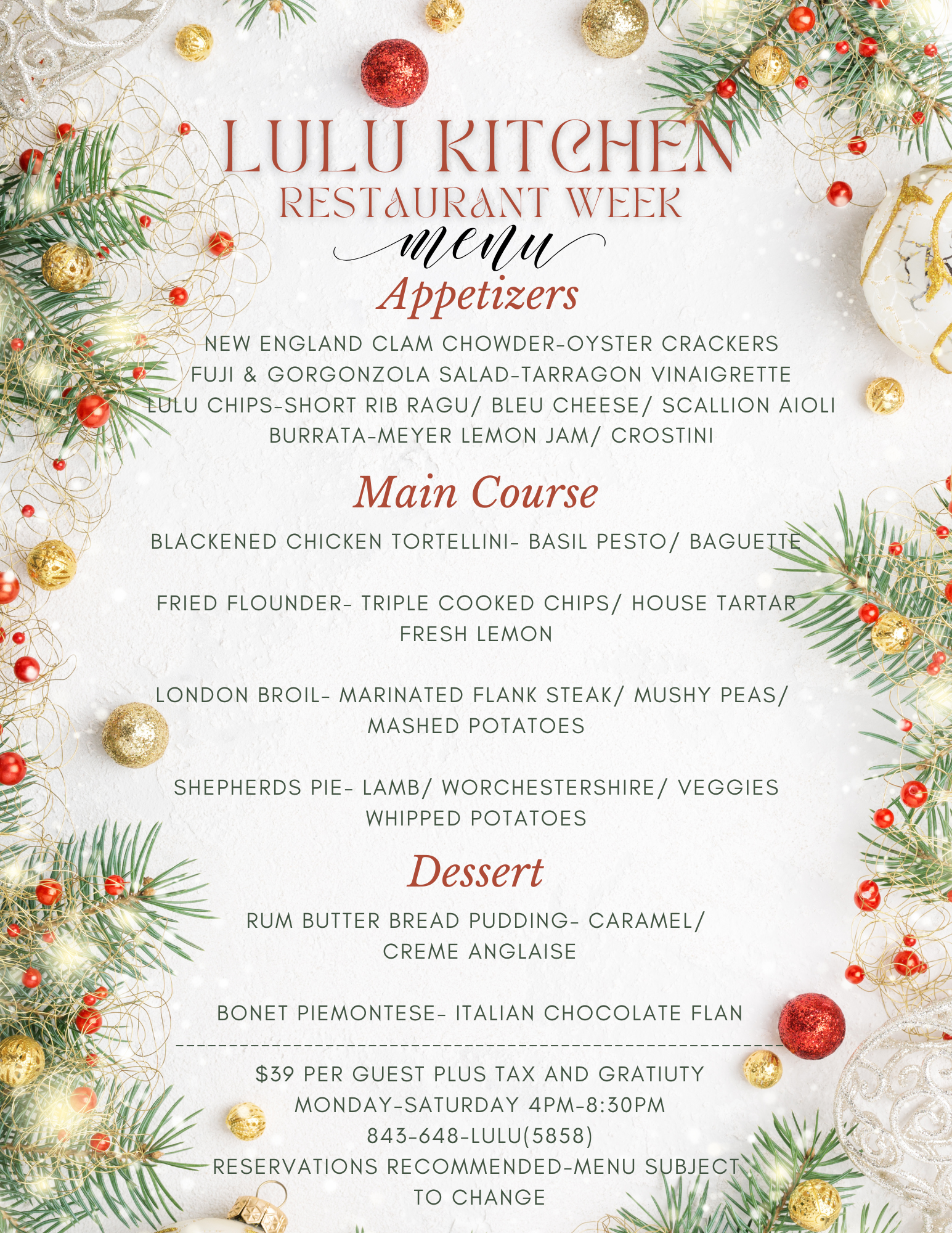 Menus are being added regularly; check back often and make your plans!